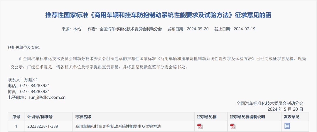 5月20日,全国汽车标准化技术委员会制动分会发布“推荐性国家标准《商用车辆和挂车防抱制动系统性能要求及试验方法》征求意见的函”。函告称,由全国汽车标准化技术委员会制动分技术委员会组织起草的推荐性国家标准《商用车辆和挂车防抱制动系统性能要求及试验方法》已经完成征求意见稿。现提交公示,广泛征求意见。征求意见截止日期:2024年7月19日。《商用车辆和挂车防抱制动系统性能要求及试验方法》(征求意见稿)的主要内容除前言外包括:范围、规范性引用文件、术语和定义、符号、分类、性能要求及试验方法、试验规程,共七章,以及附录A(规范性)附着系数利用率;附录B(规范性)在不同附着系数路面(对开路面)上的制动性能;附录C(规范性)低附着系数路面的选择方法;附录D(资料性)装备防抱制动系统的车辆的试验规程,共四个附录。本文件规定了装备防抱制动系统车辆的制动性能要求及试验方法。本文件适用于装备防抱制动系统且符合GB/T 15089 规定的M2、M3 类、N 类和O 类车辆。本文件代替GB/T 13594—2003《机动车和挂车防抱制动性能和试验方法》,与GB/T 13594—2003相比,除结构调整和编辑性改动外,主要技术变化如下:更改了标准适用范围;删除了防抱制动系统、传感器、控制器、调节器、直接控制车轮和间接控制车轮等术语的定义;更改了ER、FM、g 符号的定义;增加了对装备整体式缓速器车辆防抱死制动系统的要求;更改了“圆整”方法。GB/T 13594《机动车和挂车防抱制动性能和试验方法》定义了装备防抱制动系统车辆的制动性能要求及试验方法。该标准还被GB 12676《商用车辆和挂车制动系统技术要求和试验方法》标准引用,推进了防抱制动系统(ABS)在商用车辆和挂车的应用, ABS 在中国装车量得到日益提高,同时对整车安全性提升起到了巨大的作用。近二十年来,ECE R13 中的附件13 已进行多次修改、补充和完善,而国内标准版本仍停留在2003 版,存在更新滞后的情况。另外,从标准体系看,GB 12676-2014 版本车辆适用范围已删除了M1类车辆的内容;GB21670-2008《乘用车制动系统技术要求和试验方法》修订工作也已启动,明确修订版本保留ABS 部分。基于以上信息,为保证商用车、乘用车的车辆适用范围的一致性,GB/T13594 修订范围需要剔除M1 类车型,与GB 12676 适用范围保持一致。GB/T 13594 已应用多年,实际试验无明显错误或歧义、已非常成熟;结合ECE R13 最新修订版本也仅是编辑性的修改,试验方法并无大的变化,故无需额外增加试验验证。