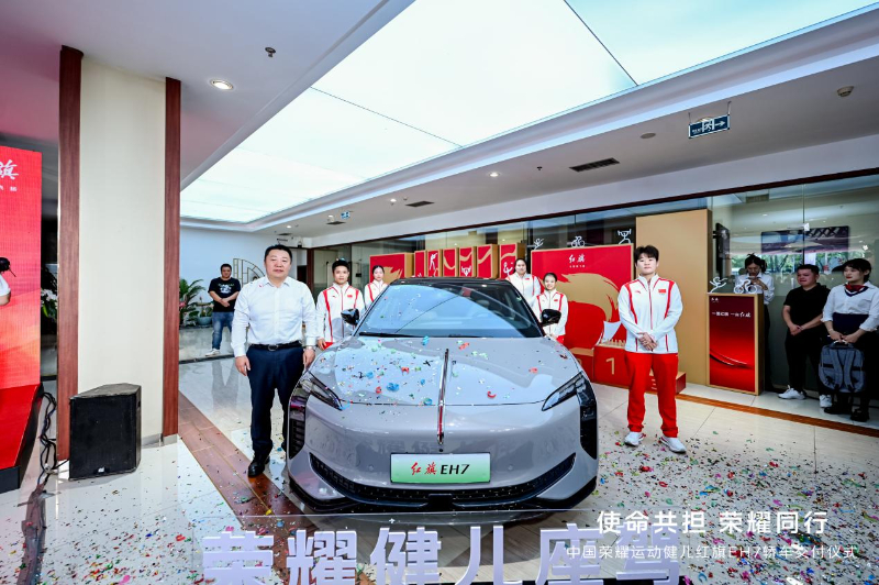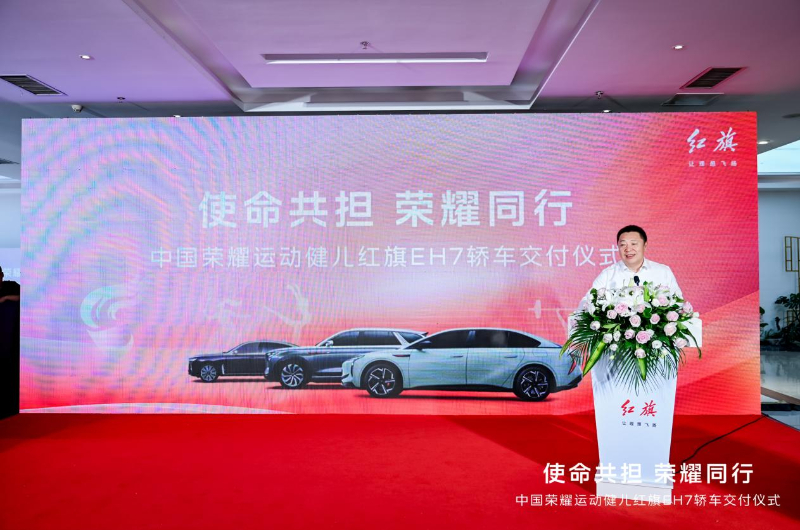 9月5日,一汽红旗在福建华奥红旗体验中心举行“荣耀健儿交车仪式”。举重男子61公斤级冠军李发彬、举重女子81公斤以上级冠军李雯雯、羽毛球女双亚军谭宁、竞技体操女子高低杠亚军邱祺缘、射击混合团体双向飞碟季军江伊婷等五位福建籍奥运健儿率先成为红旗EH7荣耀版车主。
