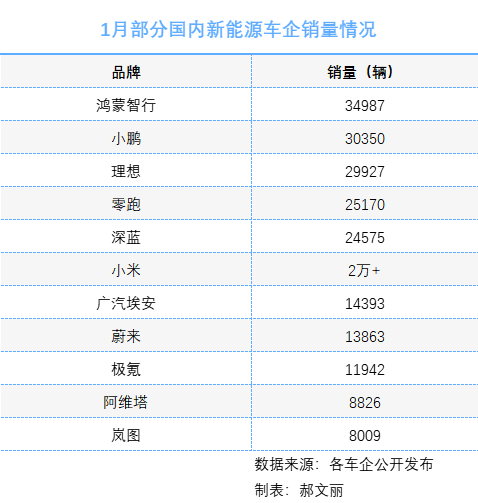 开年即开跑,开跑即冲刺。尽管赶上新年假期,车市进入淡季,但各大车企不语,只是一味销售:小鹏迎来开门红,超越理想,重回新势力车企销量冠军;零跑销量同比翻倍;小米汽车月销连续四个月超过2万辆……从榜单来看,除了理想和极氪,其他车企都实现了同比增长。